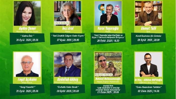 Alanya Belediyesi tarafından düzenlenen 7. Alanya Kitap Fuarı, 26 Eylül- 5 Ekim tarihleri arasında ‘Okumak Yeşertir’ teması ile gerçekleştirilecek. Onlarca yayınevi ve yazarın katılacağı fuarda, kitapseverler için indirimli kitaplar, imza günleri ve söyleşiler yer alacak.