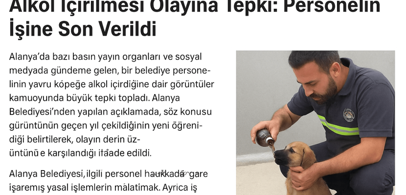 Alanya’da bazı basın yayın organları ve sosyal medyada gündeme gelen, bir belediye personelinin yavru köpeğe alkol içirdiğine dair görüntüler kamuoyunda büyük tepki topladı.